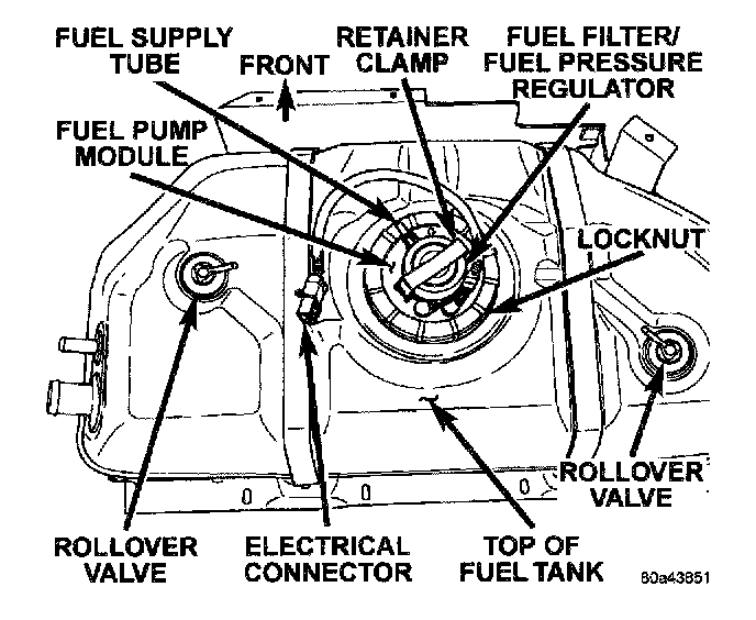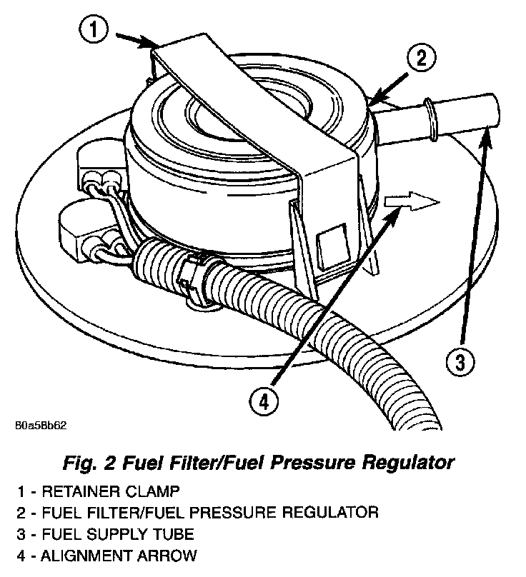 The combination fuel filter and fuel pressure regulator is located on the top of fuel pump module (Fig. 2).