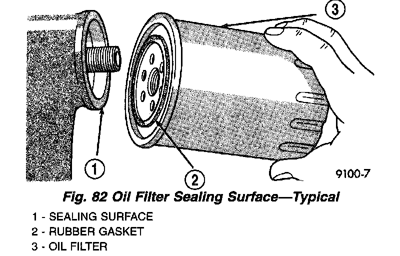 3. Rotate the oil filter counterclockwise to remove it from the cylinder block oil filter boss or filter adapter housing (Fig. 81).