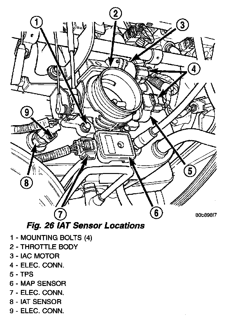 The intake manifold air temperature (IAT) sensor is installed into intake manifold plenum near throttle body or.