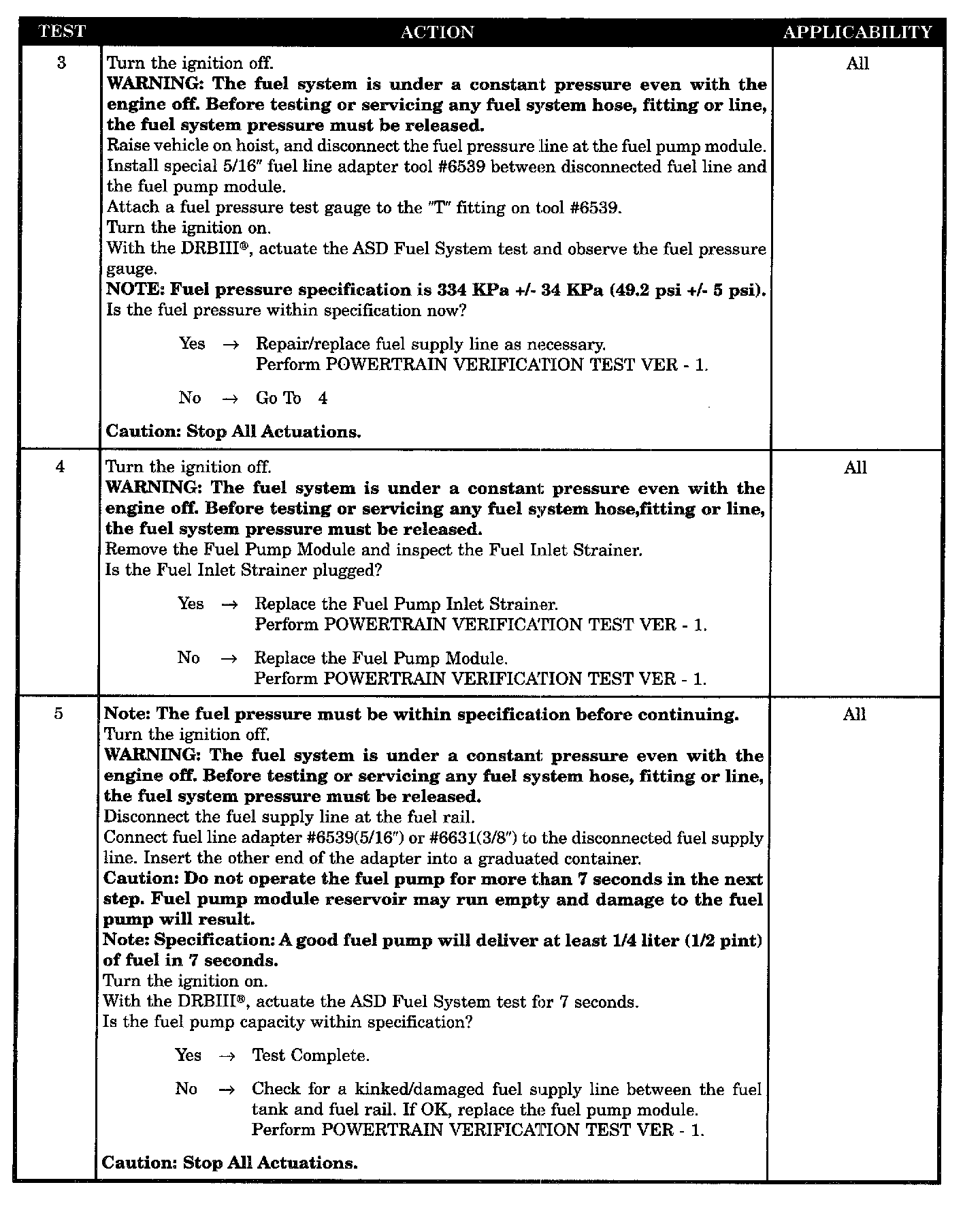 - Fuel Pump Capacity (Volume) Out Of Specs