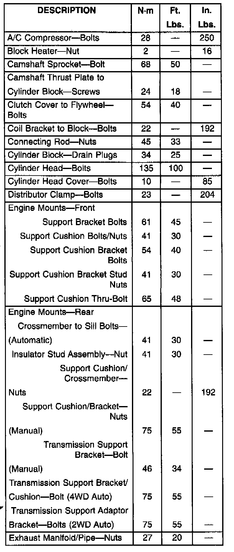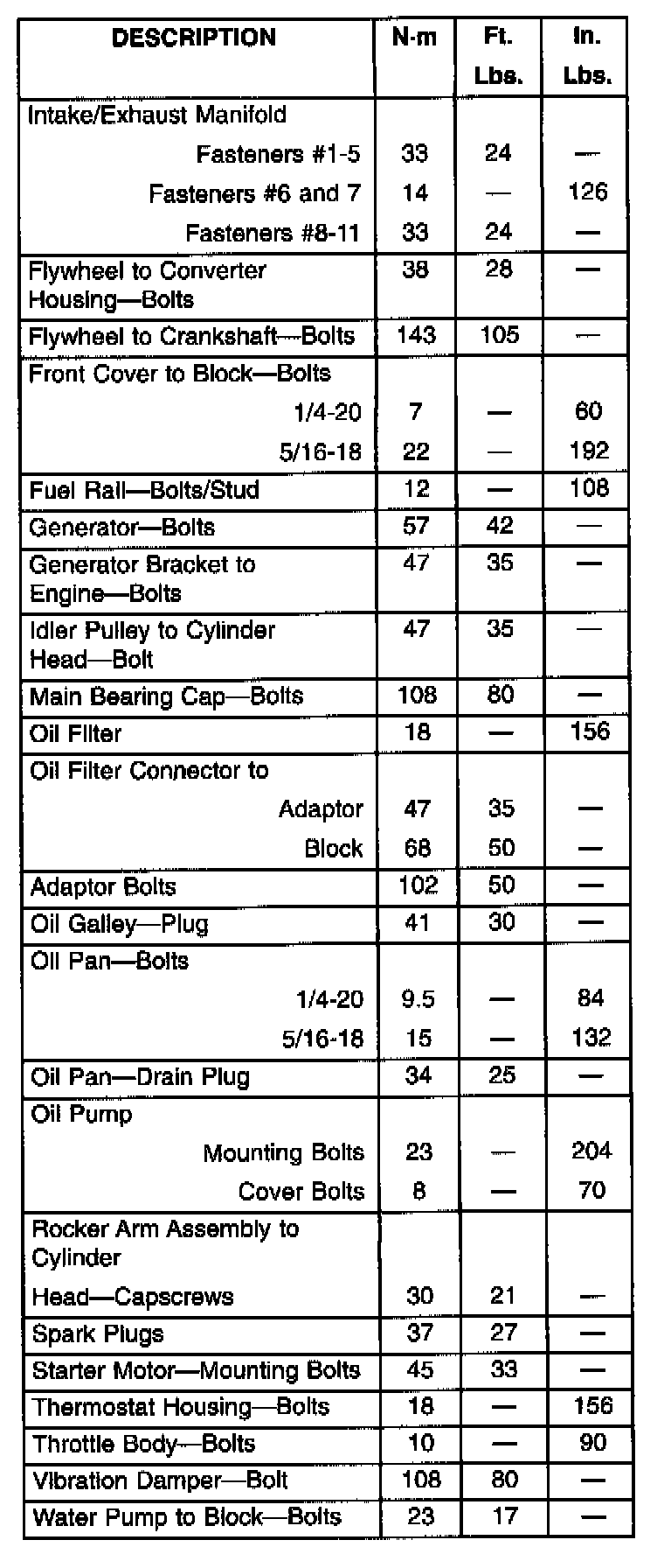 Engine Torque Specifications