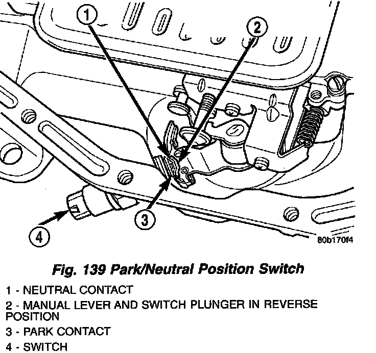 1. Move shift lever to PARK and NEUTRAL positions. Verify that switch operating lever fingers are centered in switch opening in case (Fig. 139).