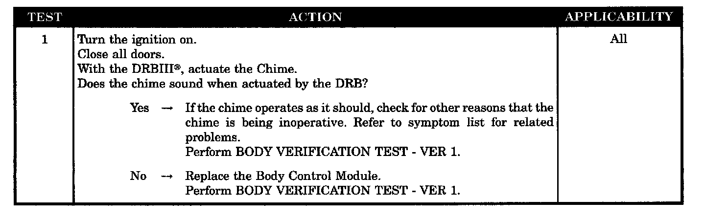 - chime inoperative