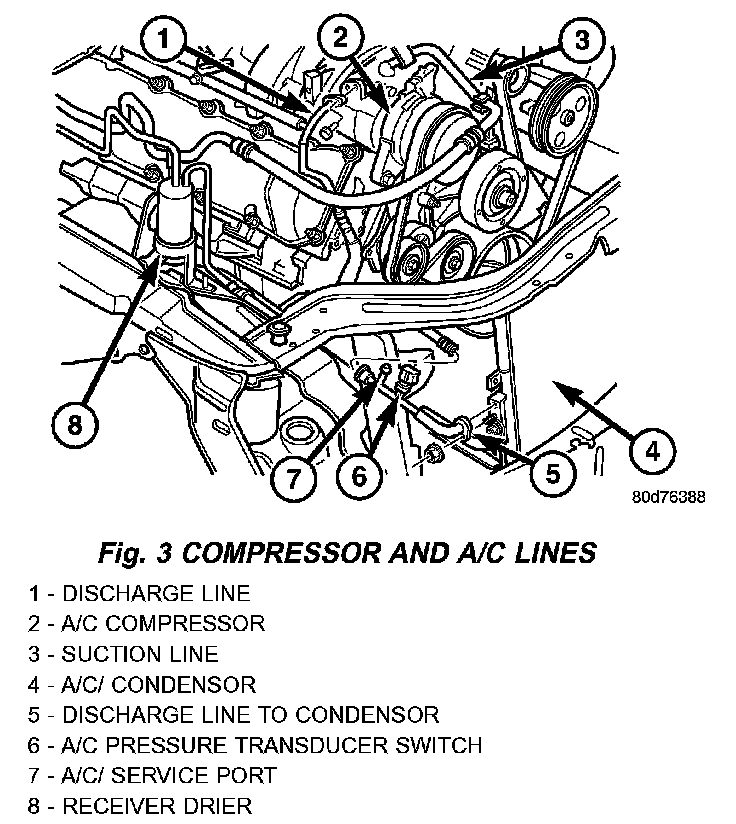 Fig.3 Compressor And A/C Lines - V8: