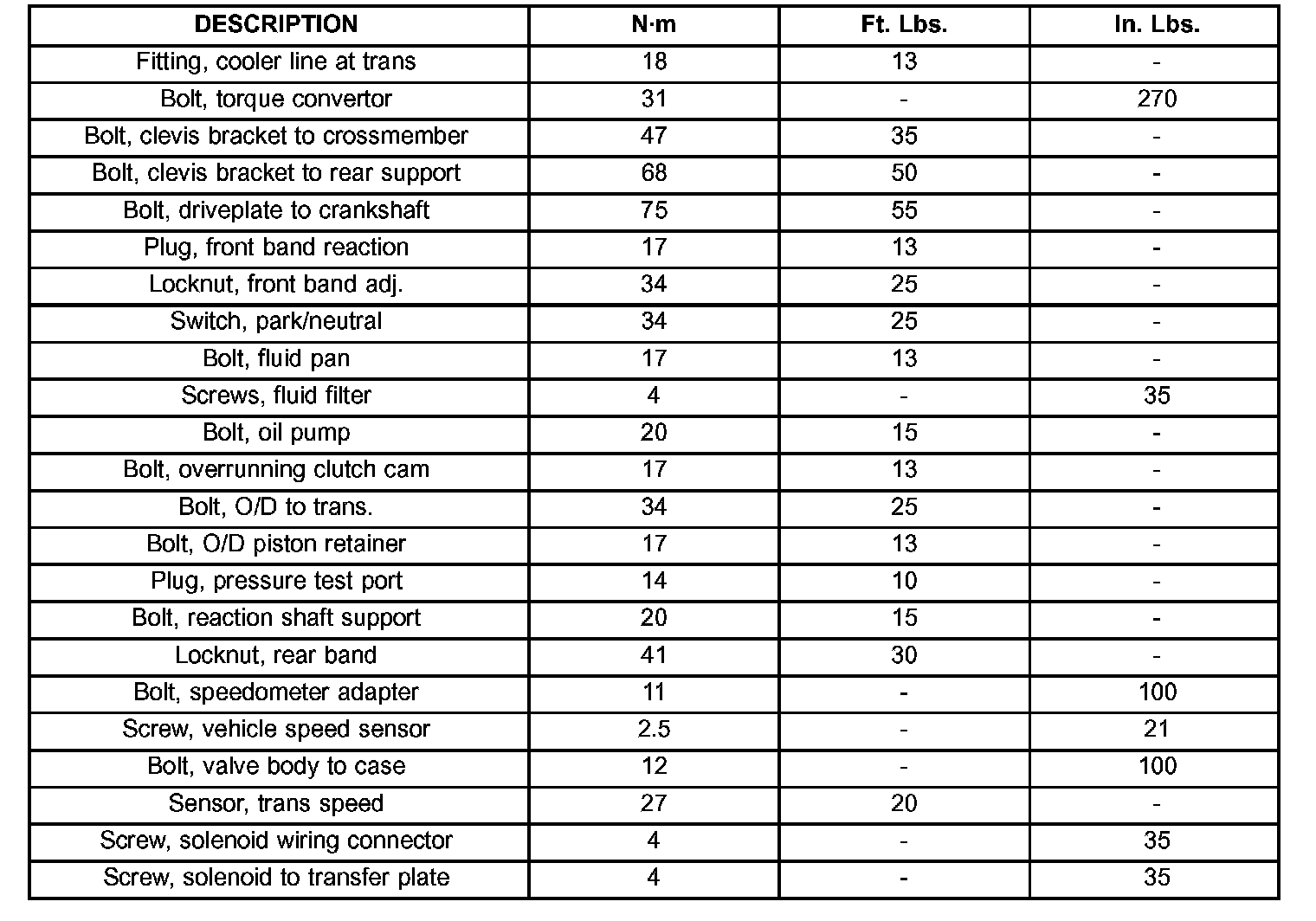 Torque Specifications