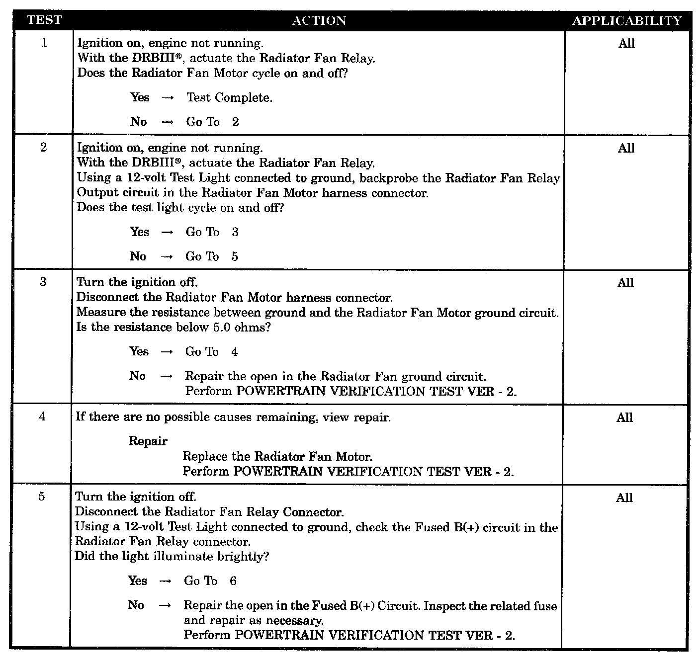 CHECKING RADIATOR FAN OPERATION WITH NO DTCS