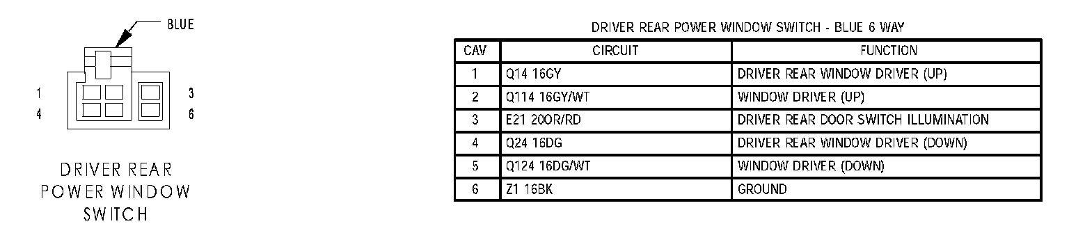 Driver Rear Power Window Switch: