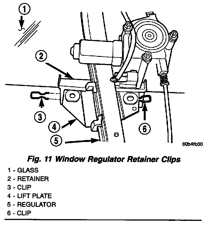 5. Remove the window clips retaining regulator.
