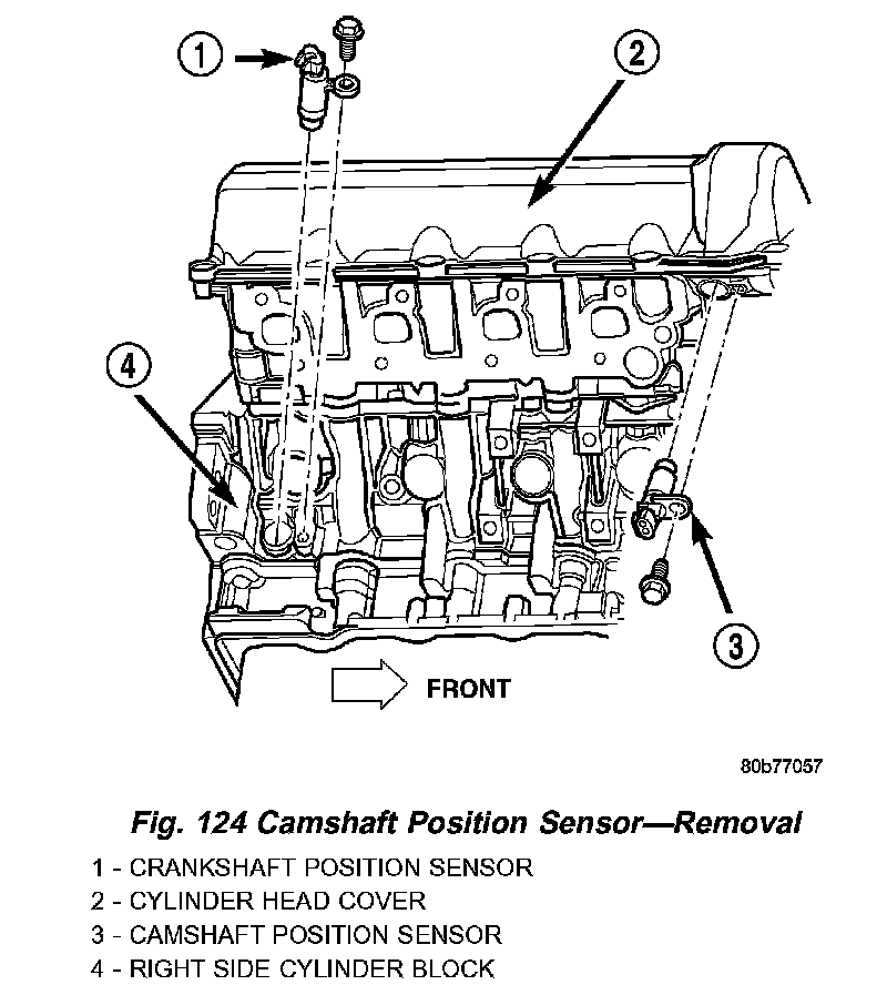 12. Remove camshaft position sensor from right cylinder head (Fig. 124).