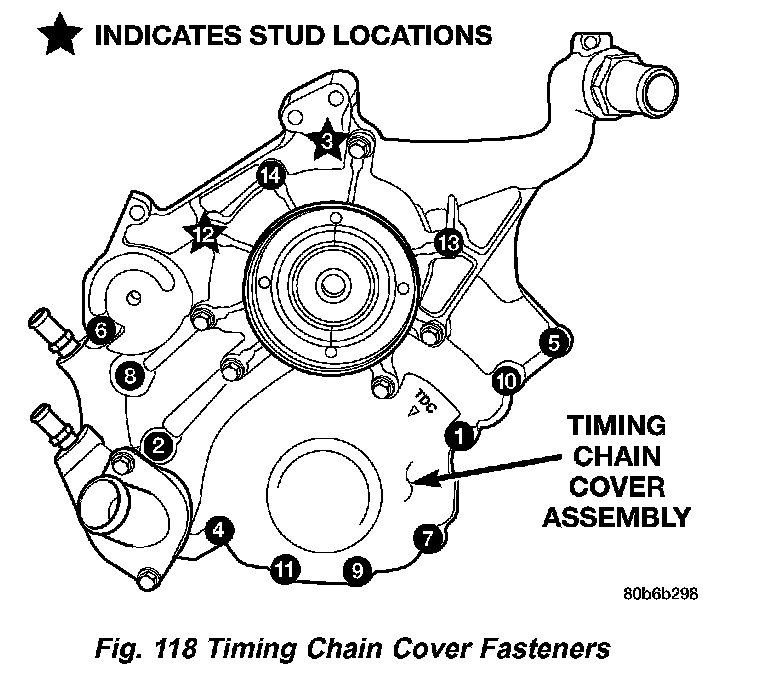1. Clean timing chain cover and block surface. Inspect cover gasket and replace as necessary.