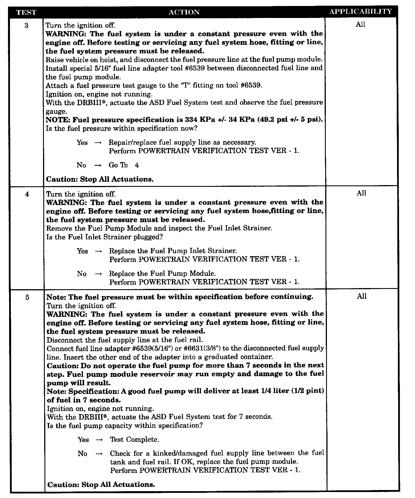 - Fuel pump capacity (volume) out of SPECS