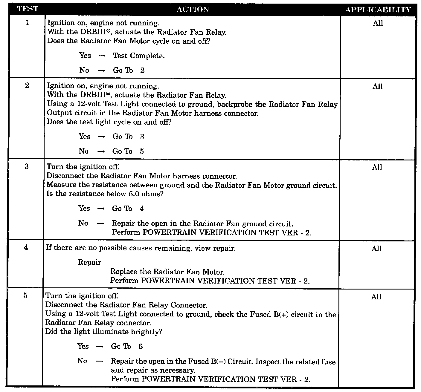 CHECKING RADIATOR FAN OPERATION WITH NO DTCS