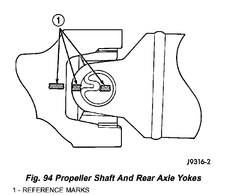 25. Install front and rear propeller shafts with reference marks aligned (Fig. 94).