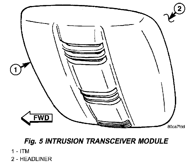 An Intrusion Transceiver Module (ITM) is part of the premium version of the Vehicle Theft Alarm (VTA) in the Vehicle Theft Security System (VTSS). The premium version of the VTA is only available in vehicles built for certain markets, where the additional features offered by this system are required. The ITM is located in the passenger compartment. This unit is designed to provide interior motion detection, and serve as an interface between the Body Control Module (BCM) and the alarm siren module.