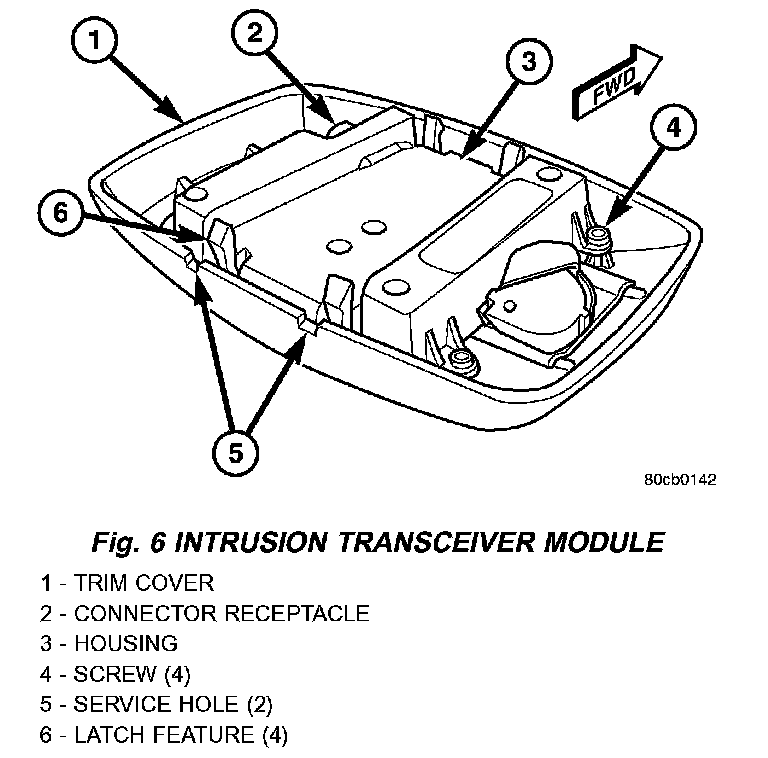 Concealed within the housing is the circuitry of the ITM which includes a microprocessor, and an ultrasonic receive transducer. Both the transmit transducer on the right side of the module and the receive transducer on the ITM circuit board are aimed through two small round holes in the sight shield of the trim cover. The ITM is connected to the vehicle electrical system by a take out and connector of the overhead wire harness that is integral to the headliner.