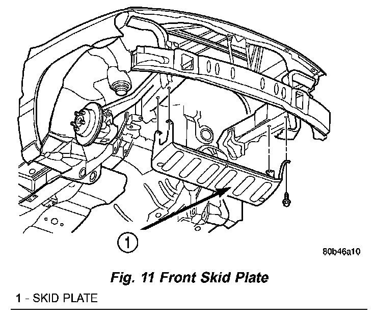 2. Remove bolts attaching skid plate to frame (Fig. 11).