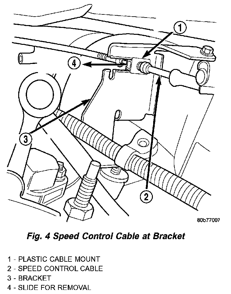 Fig.4 Speed Control Cable At Bracket - 4.7L V-8 Engine: