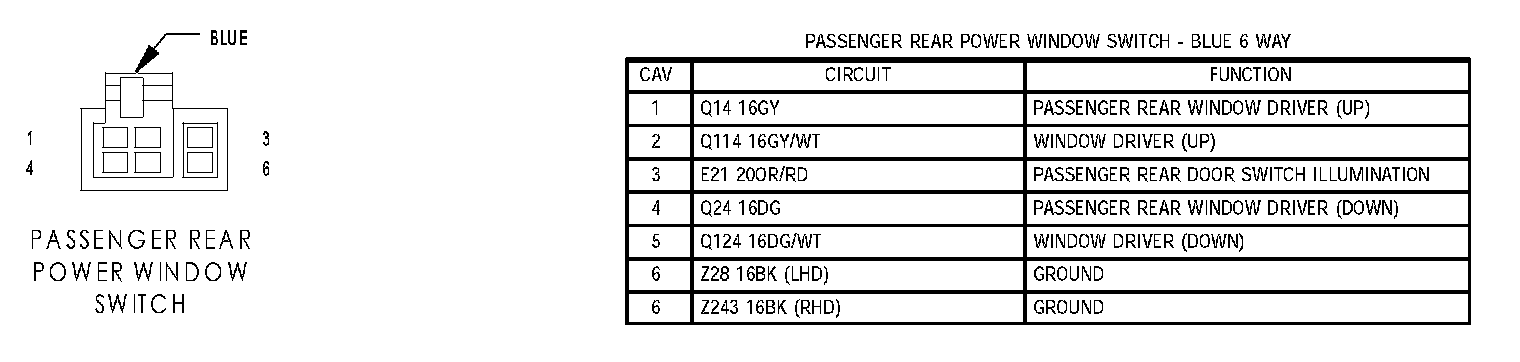Driver Rear Power Window Switch: