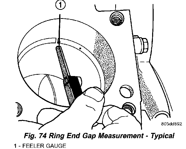 4. Using a feeler gauge check the ring end gap (Fig. 74). Replace any rings not within specification.