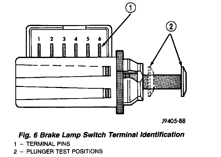 Brake lamp switch operation can be tested with an ohmmeter. The ohmmeter is used to check continuity between the pin terminals at different plunger positions.