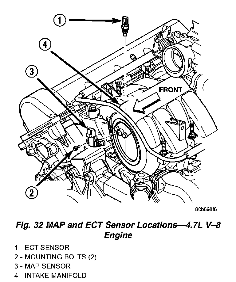 Fig. 32 MAP and ECT Sensor Locations - 4.7L: