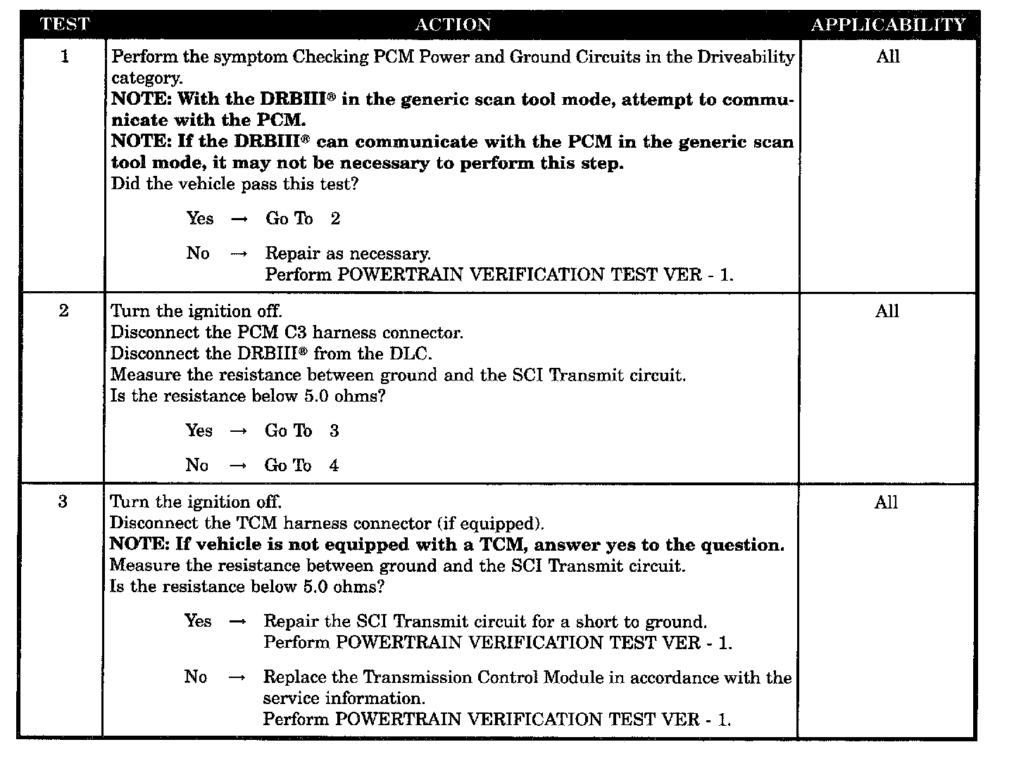NO RESPONSE FROM PCM (SCI BUS) - GAS ONLY
