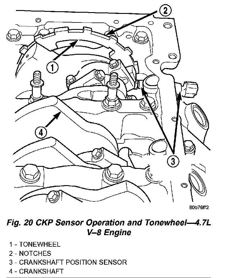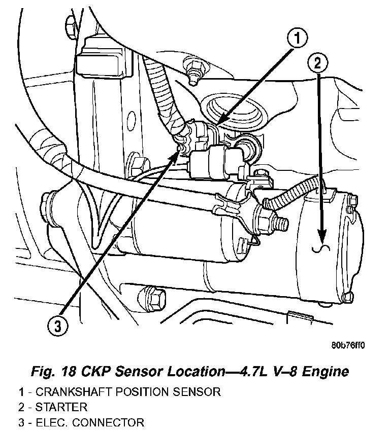 Fig. 18 CKP Sensor Location - 4.7L V-8 Engine: