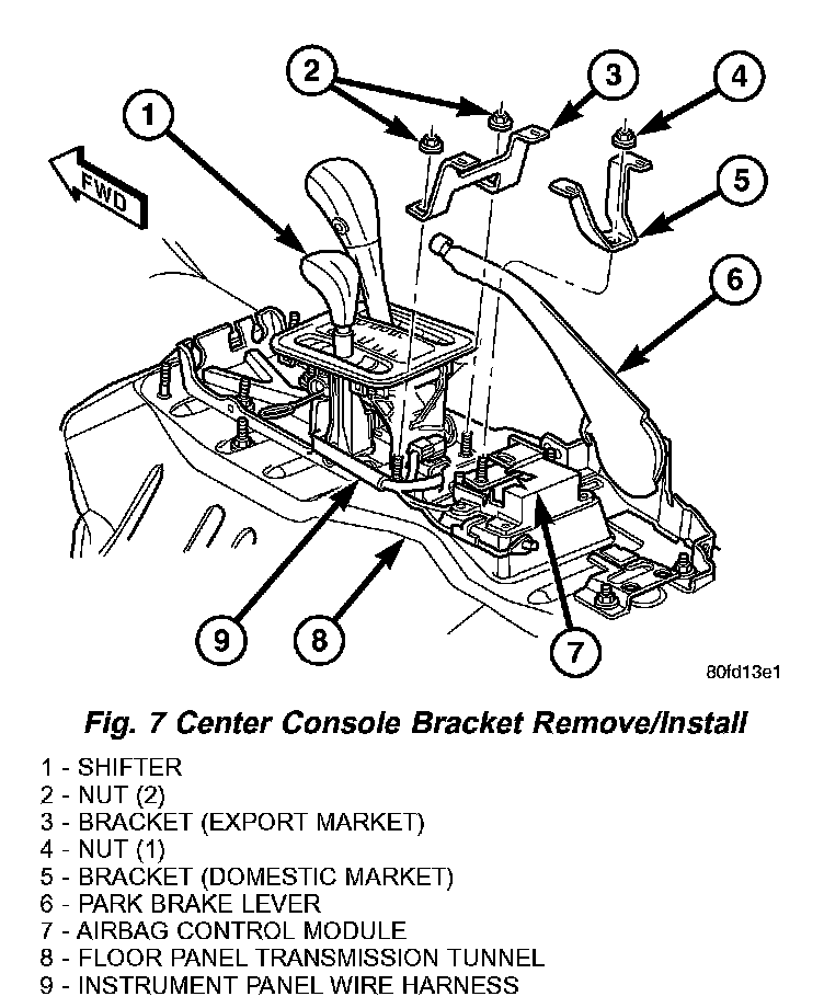 Fig. 7 Center Console Bracket Remove/Install: