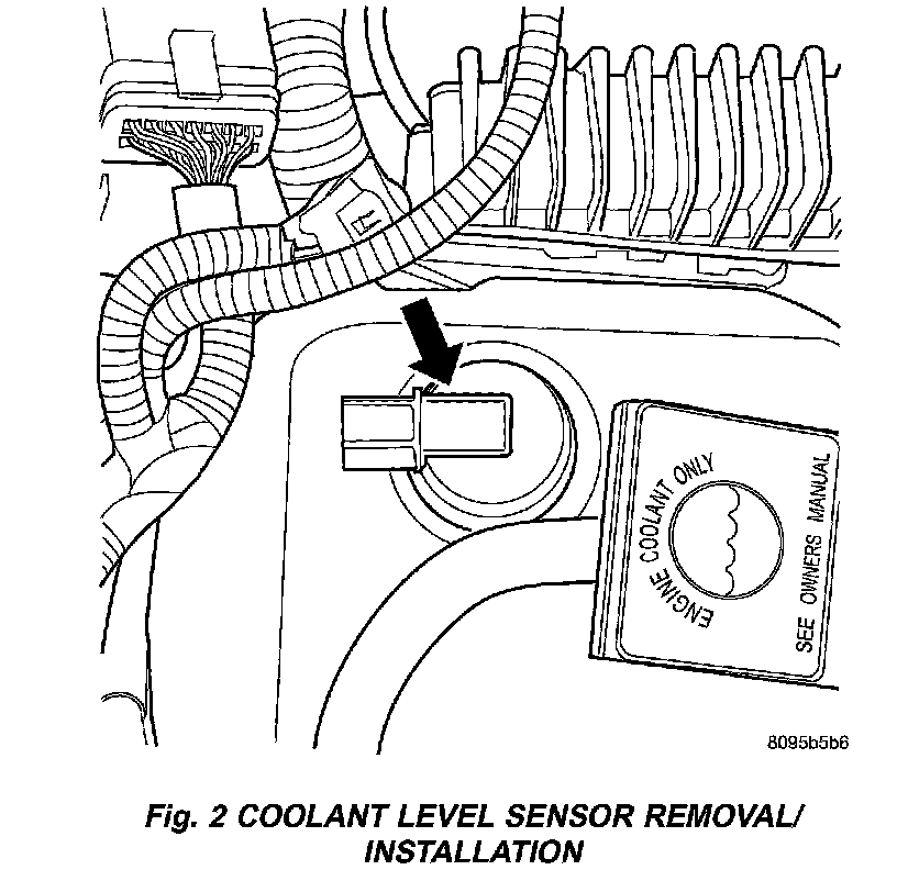 NOTE: Make sure the coolant level sensor fully seats into the rubber grommet. Failure to do so may cause inaccurate coolant level readings and leaks.
