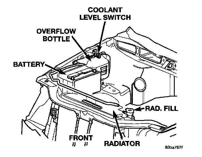 The battery is mounted in a molded plastic battery tray and support unit located in the right front corner of the engine compartment.