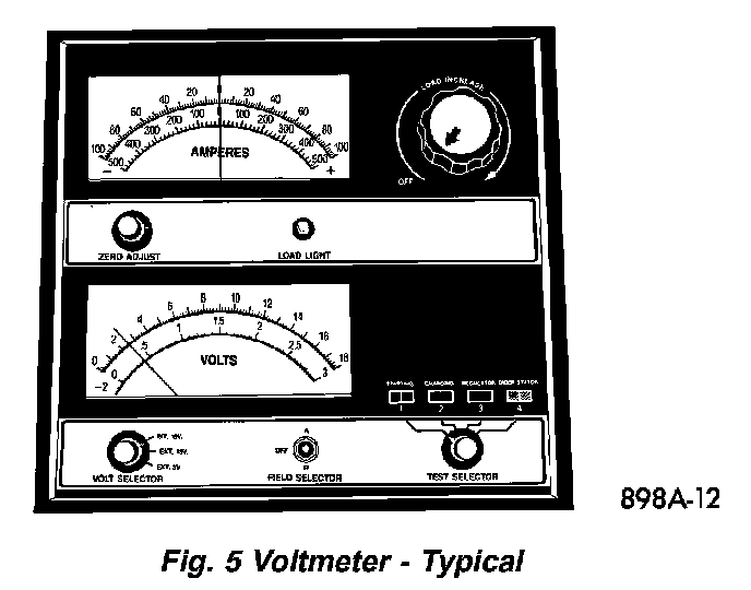 The following procedure should be used to recharge a completely discharged battery. Unless this procedure is properly followed, a good battery may be needlessly replaced.Fig.5 Voltmeter - Typical: