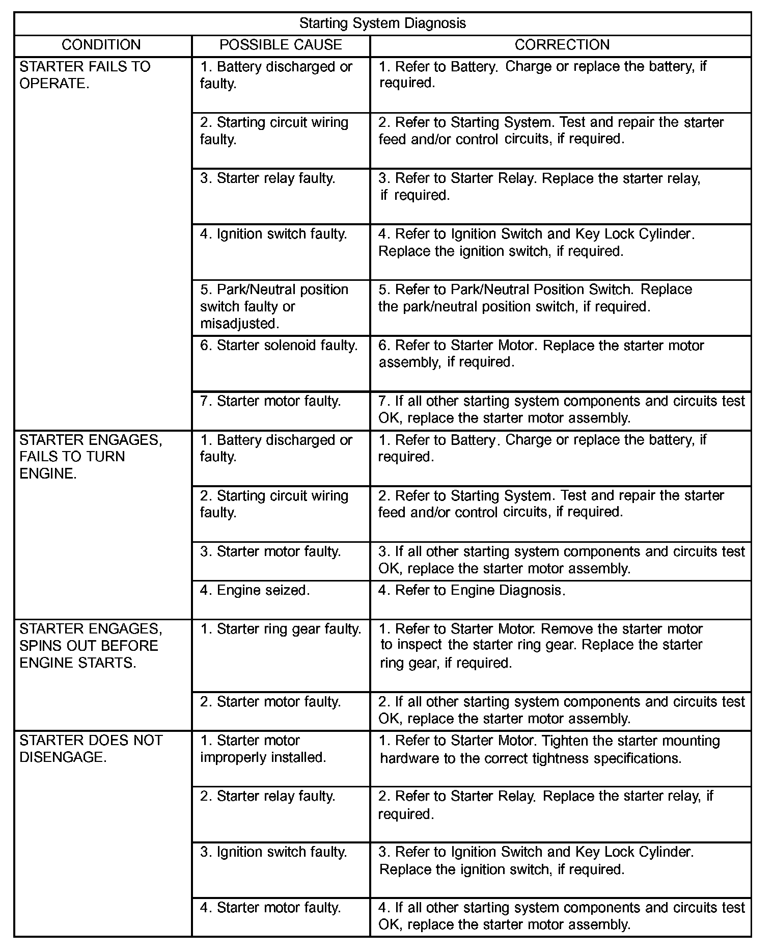 For complete circuit diagrams, refer to Starting System in the Contents of Group Wiring Diagrams. Before removing any unit from the starting system for repair or diagnosis, perform the following inspections: