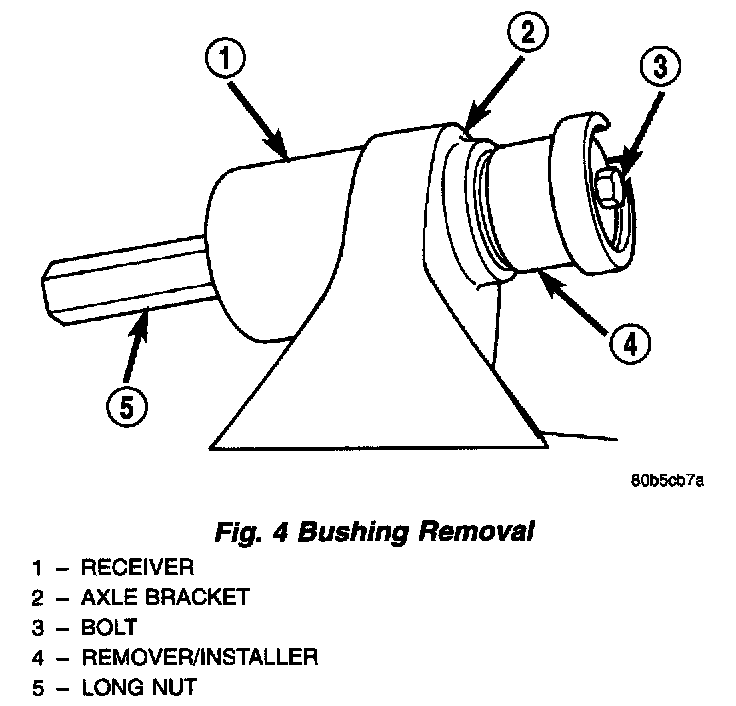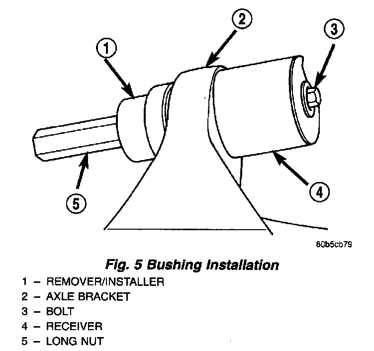 6. Install Long Nut 7603 and tighten nut too pull bushing out of the axle bracket.