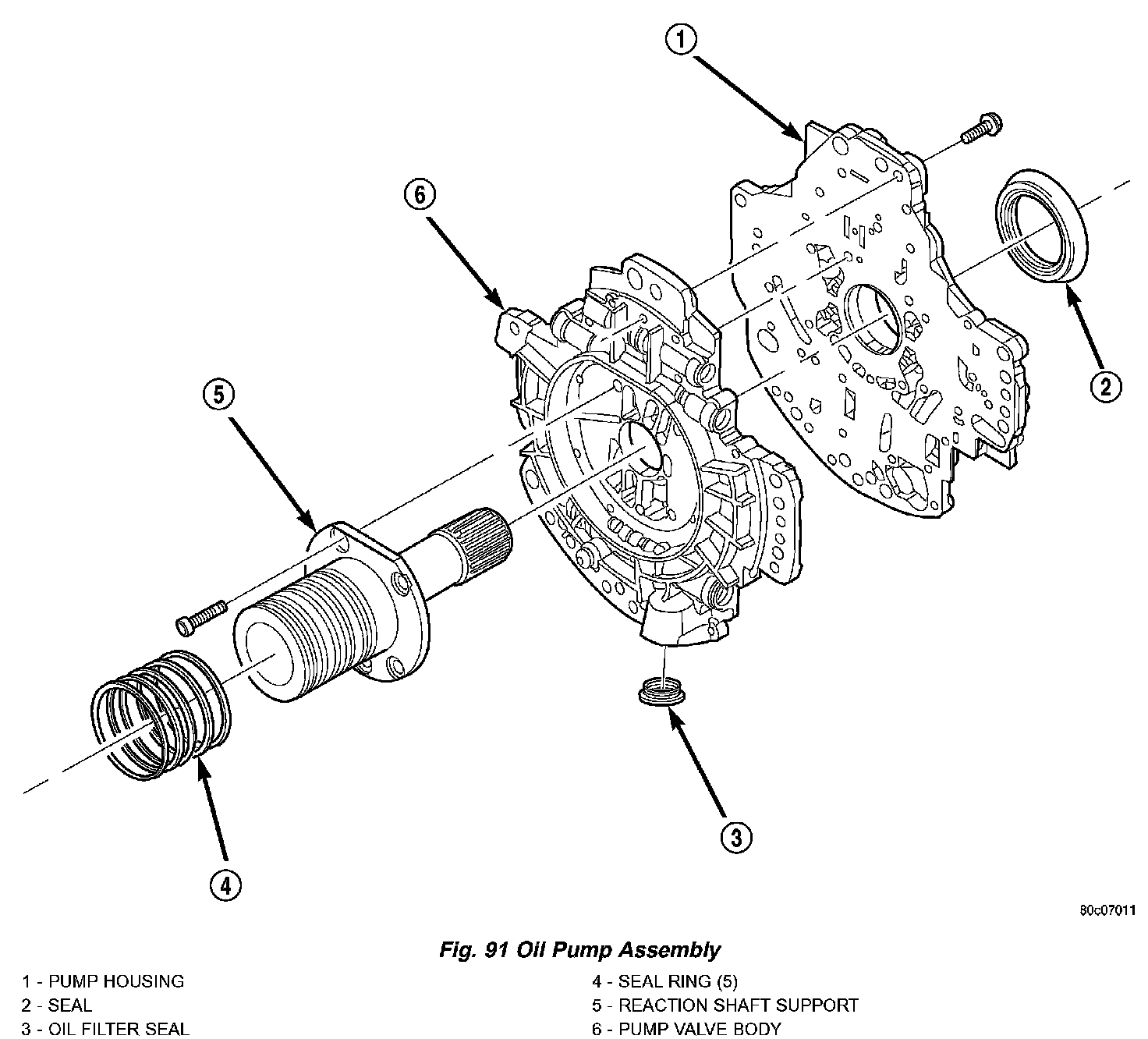10. Position the reaction shaft support into the oil pump (Fig. 91).