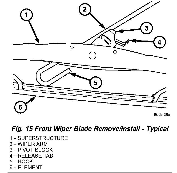Fig. 15 Front Wiper Blade Remove/Install - Typical: