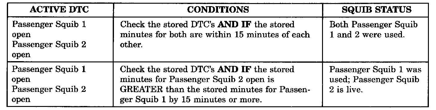1. Using a DRBIII read Airbag DTC's If the following active codes are present: