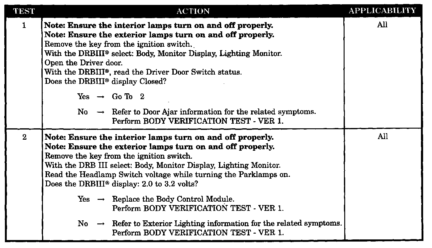 CHIME INOPERATIVE WITH EXTERIOR LAMPS, DRIVER DOOR OPEN
