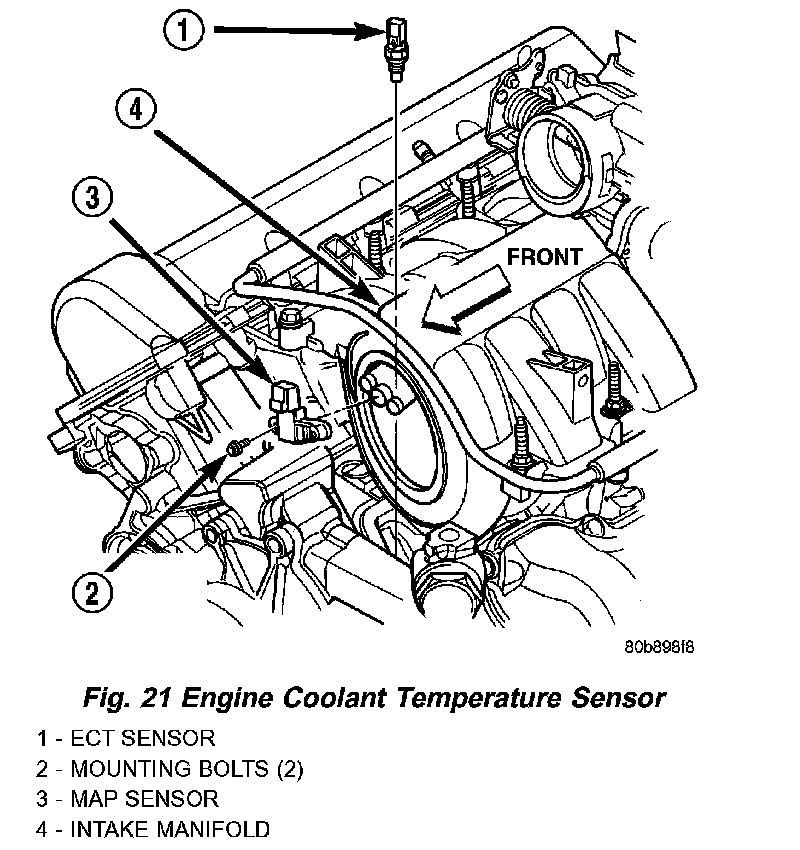 ENGINE COOLANT TEMPERATURE SENSOR - 4.7L ENGINEREMOVAL