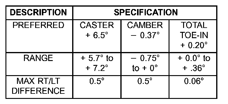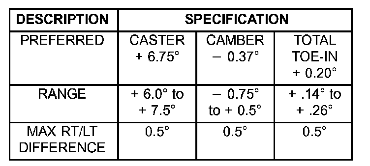 FRONT WHEELS - STANDARD SUSPENSION SPECIFICATIONS