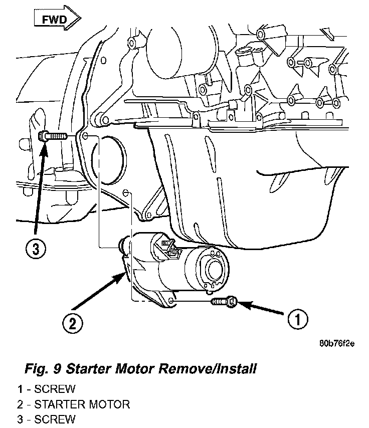 Fig.10 Starter Motor Remove/Install - 4.7L Engine: