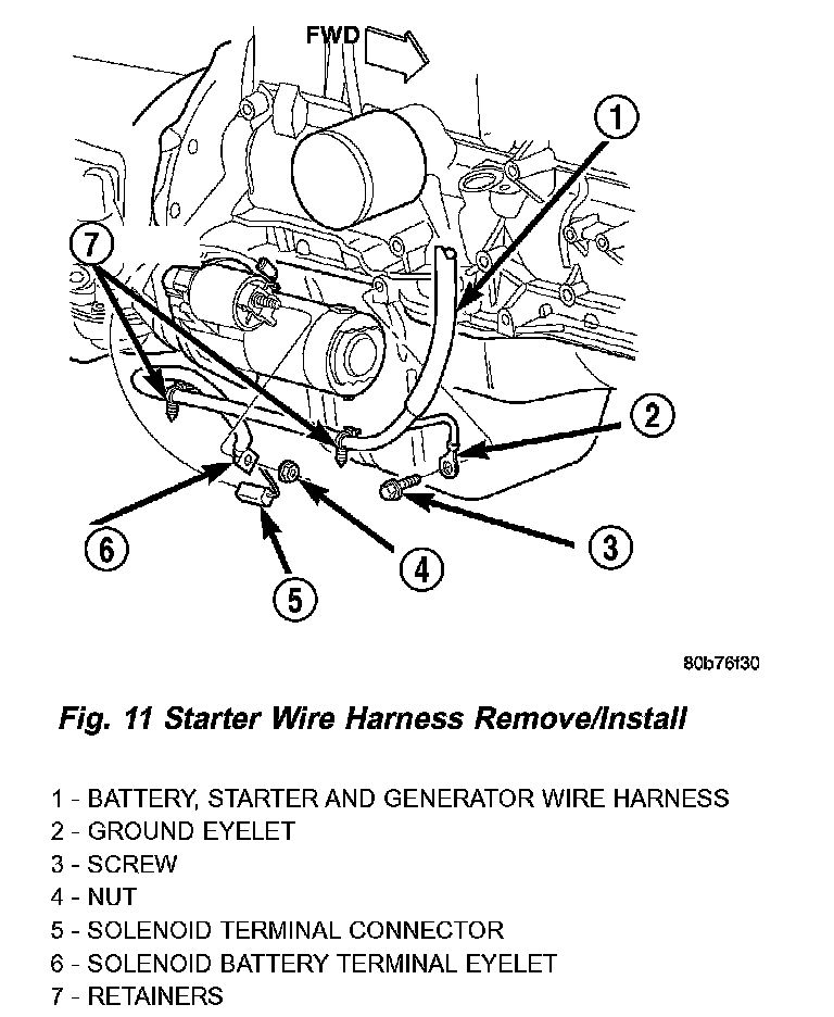 Fig.12 Starter Wire Harness Remove/Install - 4.7L Engine: