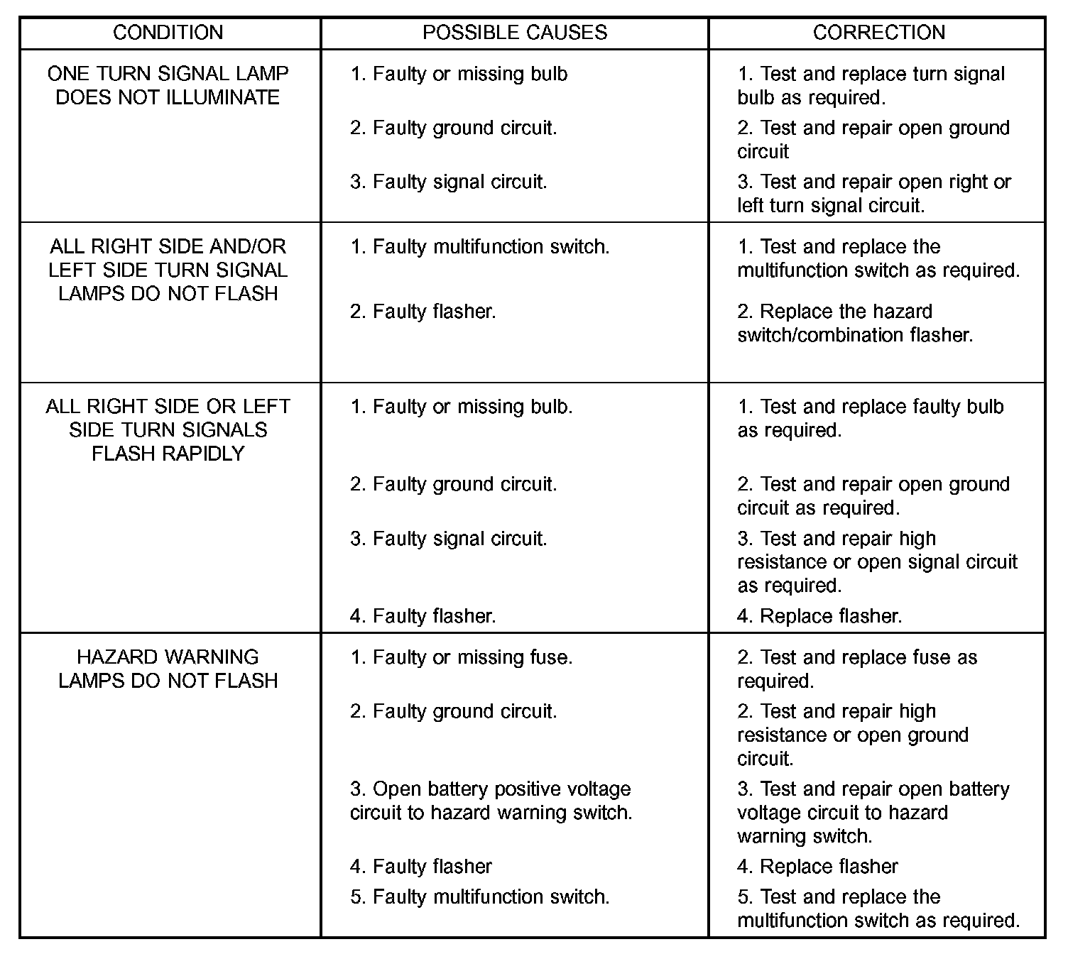TURN SIGNAL & HAZARD WARNING SYSTEMAlways begin any diagnosis by testing all of the fuses and circuit breakers in the system. Refer to the appropriate wiring information.