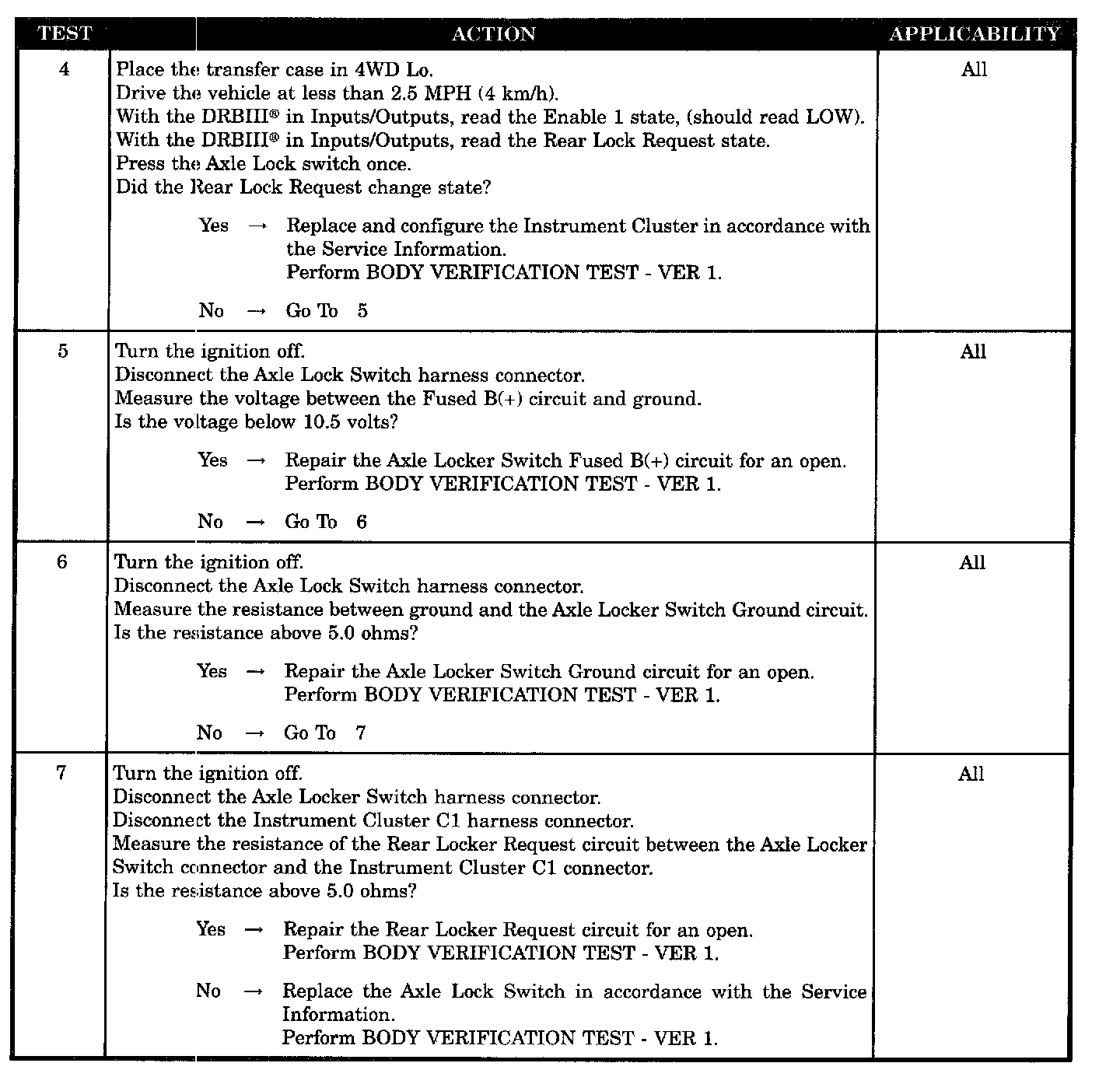 - Axle locker switch ground circuit open