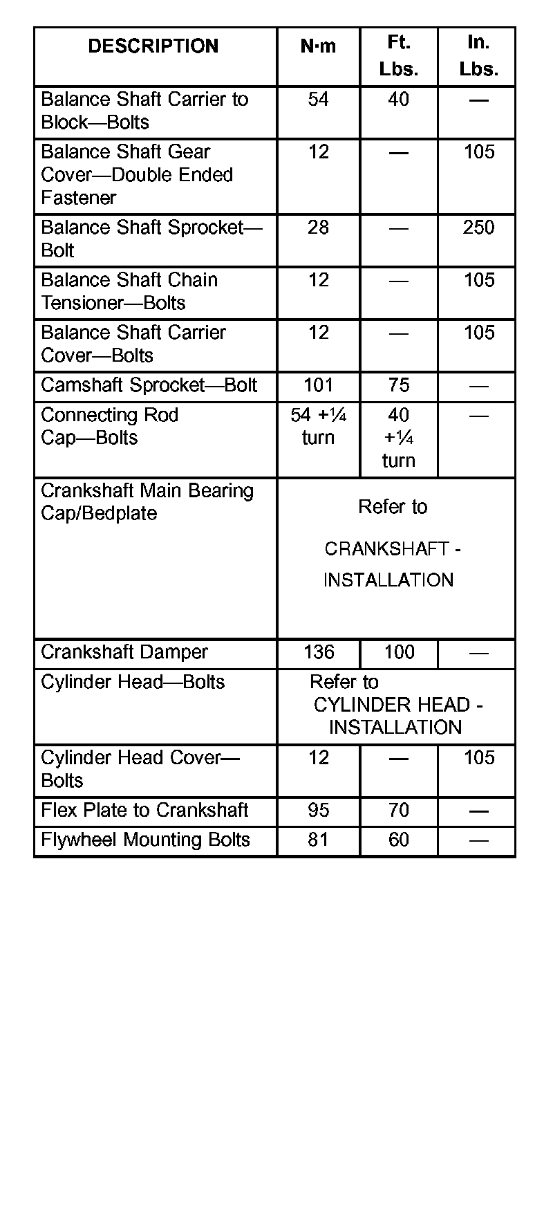 Engine Torque Specifications