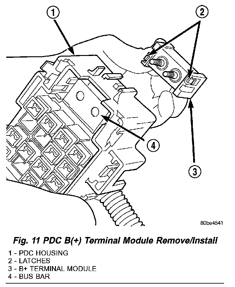 4. From the bottom of the PDC housing, remove the B(+) terminal module from the PDC (Fig. 11).