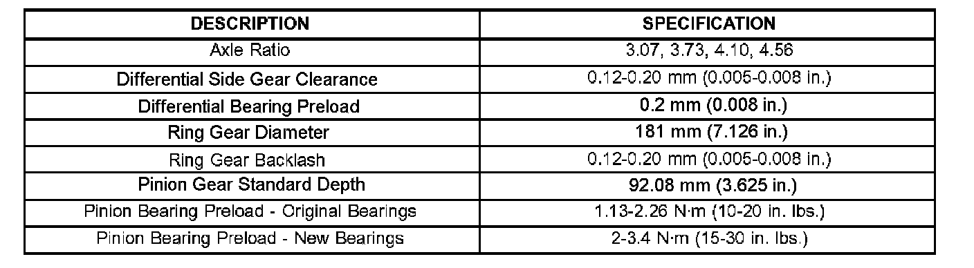 Torque Specifications: