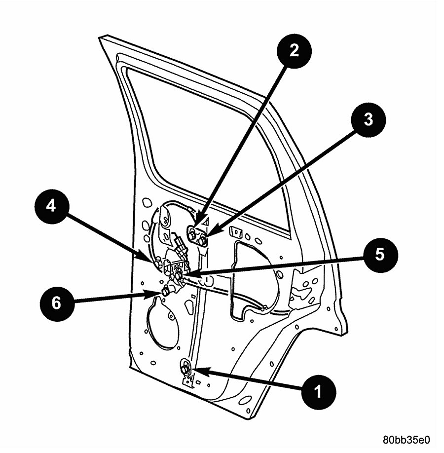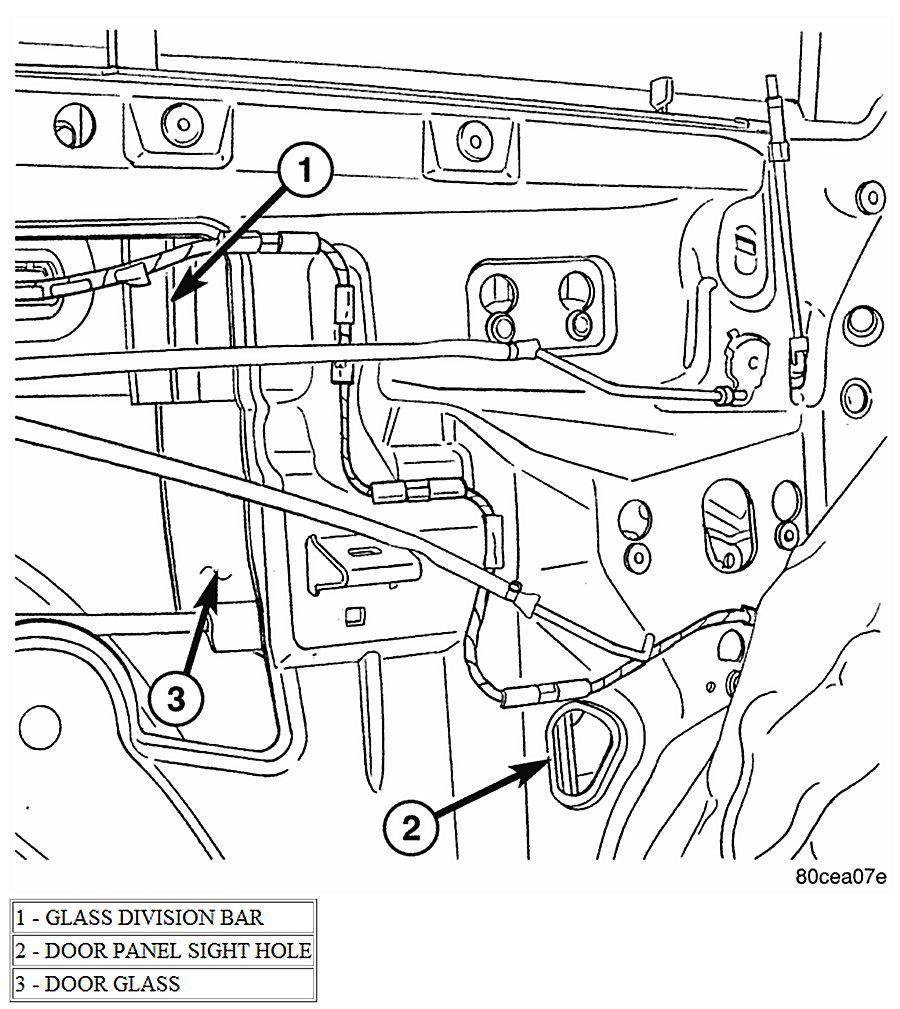 2. Raise the glass and line up the lift plate clip with the hole in the door panel shown.