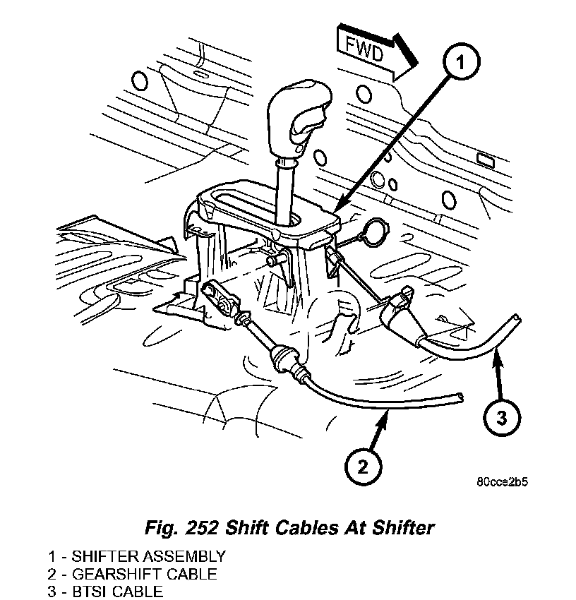 3. Disconnect the transmission shift cable at shift lever and shifter assembly bracket (Fig. 252).