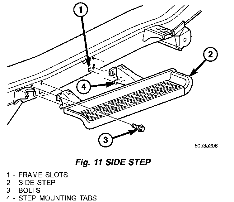 1. Remove the bolts that attach the side step to the frame (Fig. 11).