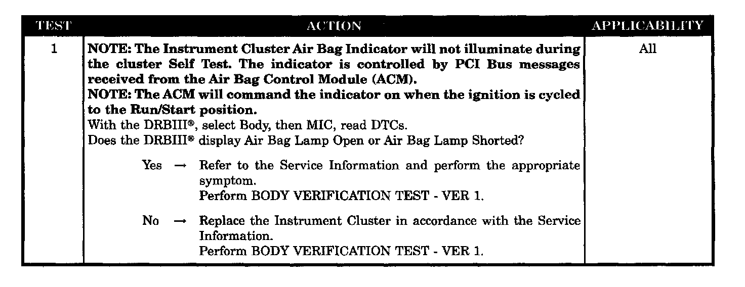 AIR BAG INDICATOR INOPERATIVE